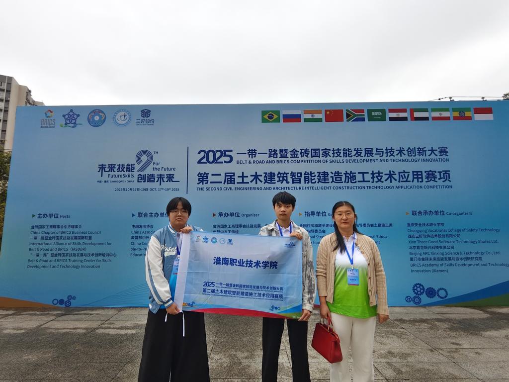 2025年10月17日至19日,第二届“一带一路暨金砖国家技能发展与技术创新大赛土木建筑智能建造施工技术应用赛项”全国总决赛在重庆安全技术职业学院盛大举行。工程管理学院于慧、陈文峰指导的丁明涛、张林参赛团队凭借过硬的综合素养与卓越的团队协作,勇夺全国总决赛银奖,彰显了学院在高等技术技能人才培养方面的显著成效与前沿水平。