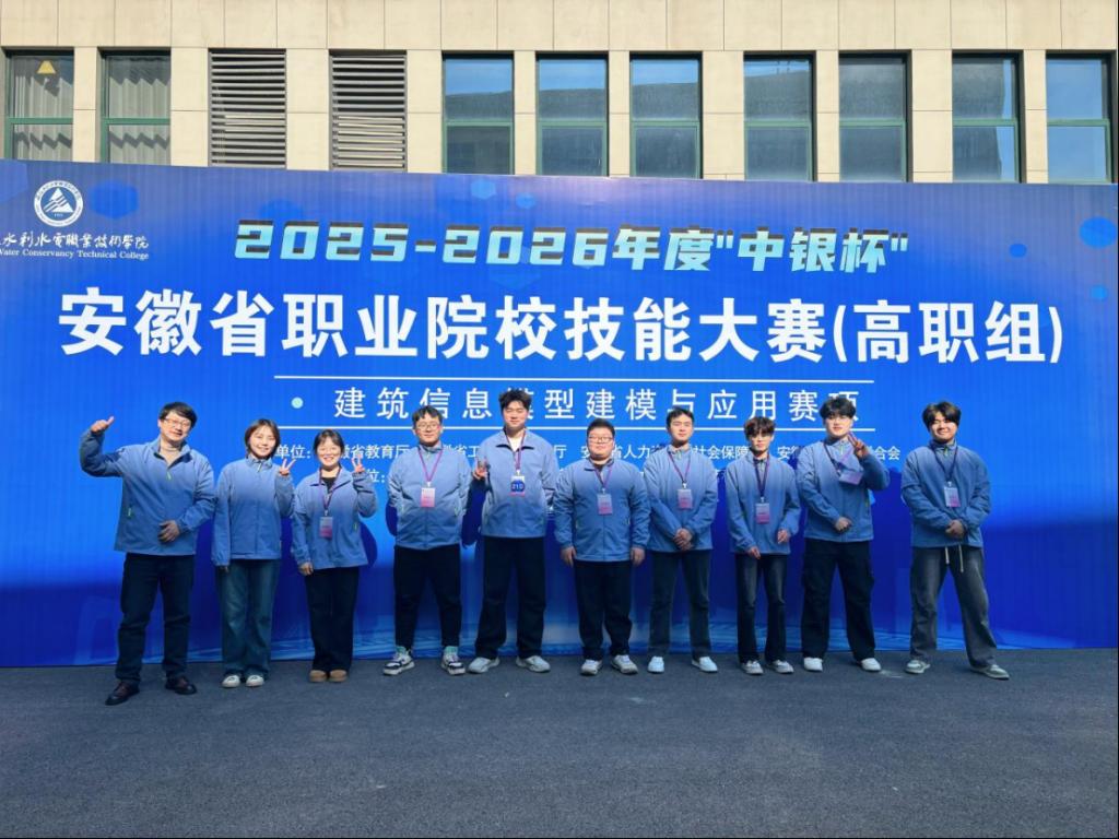 2026年1月21日至23日,2025-2026年安徽省职业院校技能大赛“建筑信息模型建模与应用”赛项在安徽水利水电职业技术学院举行。来自全省24所职业院校的36支代表队同场竞技,工程管理学院选派的两支代表队沉着应战,凭借扎实的专业技能和良好的团队协作,双双斩获三等奖,为学院赢得荣誉。